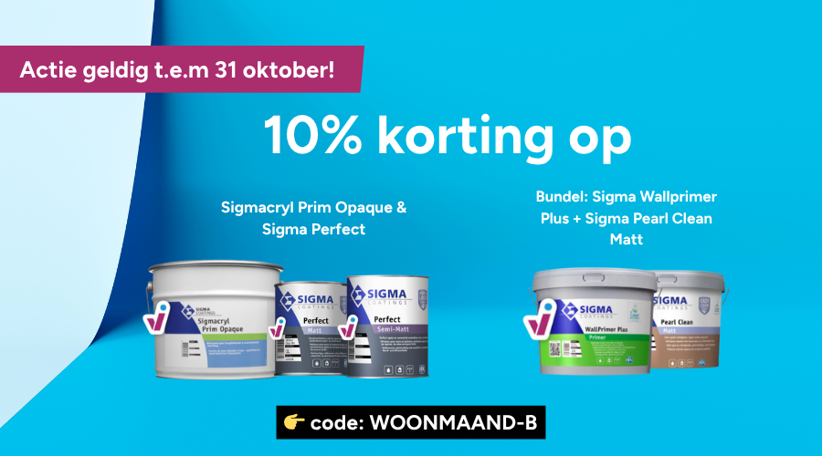 ✨ Profiteer nu van 10% korting op Sigmacryl Prim Opaque, Sigma Perfect & Bundel: Sigma Wallprimer Plus + Sigma Pearl Clean Matt.